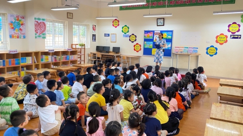 Hoạt động thư viện kết hợp với tiết Tiếng việt - đọc mở rộng của Lớp 2A5 tiết 1 buổi sáng và lớp 2A4 tiết 1 buổi chiều
